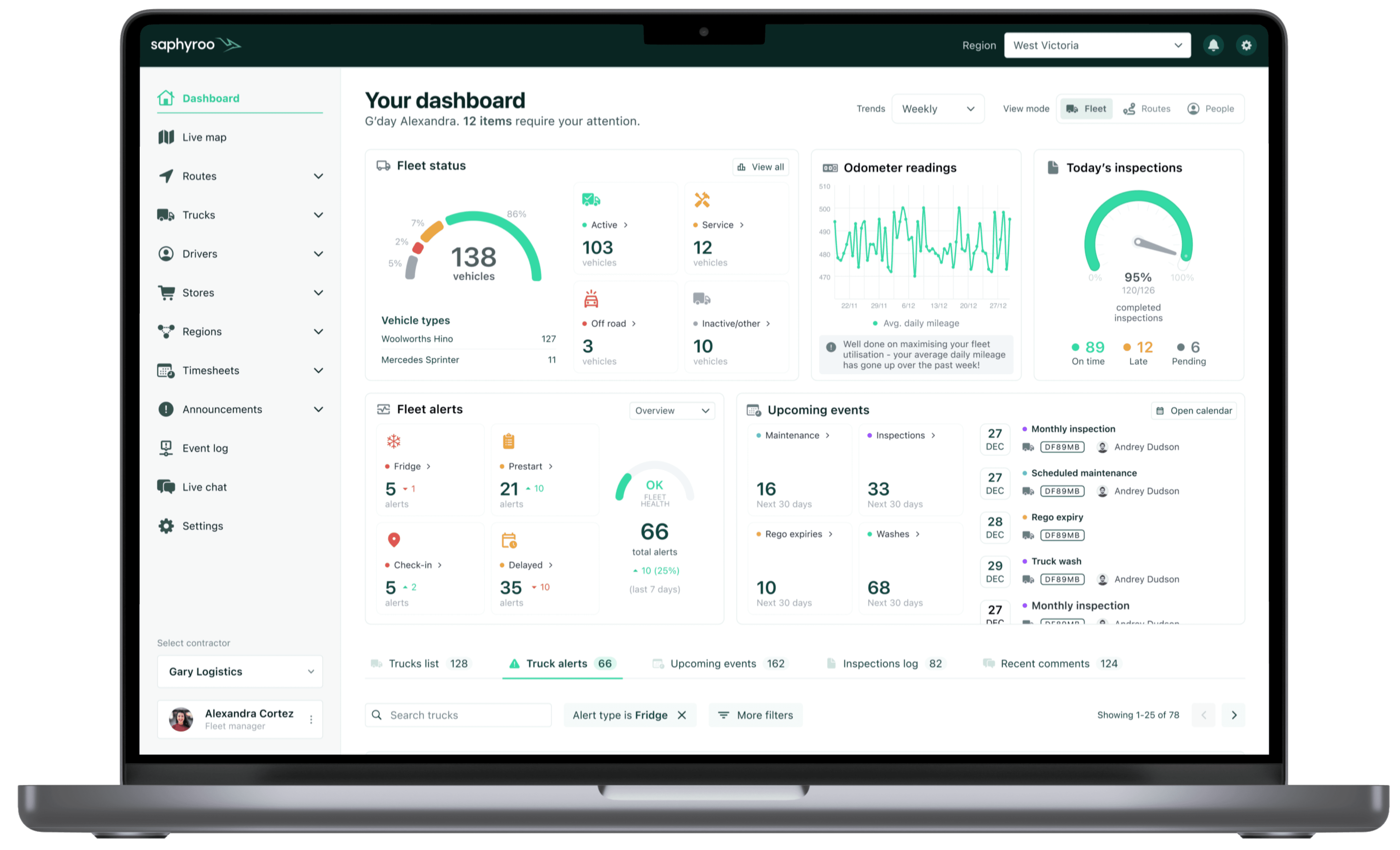 Each truck runs on its own MVPI cycle with staggered expiry dates. That is why fleets need a centralised view. The best operators link compliance with maintenance so deadlines are tracked before Muroor flags them. Most Saudi fleet management teams run MVPI dates, istimara renewals and workshop scheduling off the same calendar for this reason.