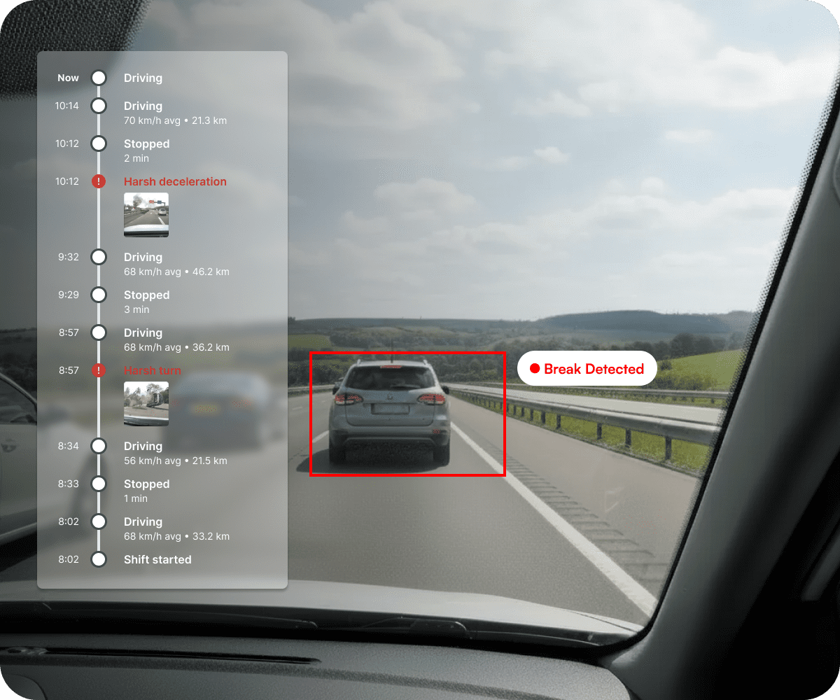 Harsh braking on the M25. Phone use in the cab. Speeding over the 56mph HGV limit. Saphyroo spots every risk behaviour and surfaces it before the Traffic Commissioner or your CFO does. One screen, every driver, every shift.